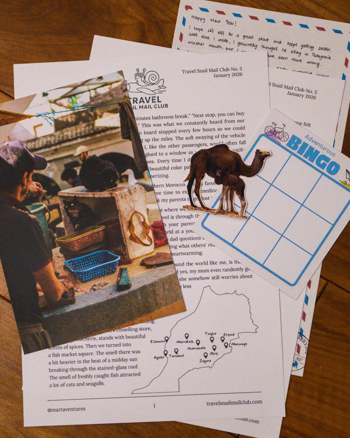 Hand-signed letter sharing real stories from my adventures, high-quality A5 photo print of one of my favorite travel shots (perfect for framing or pinning up), and a sticker created from one of my photographs.
